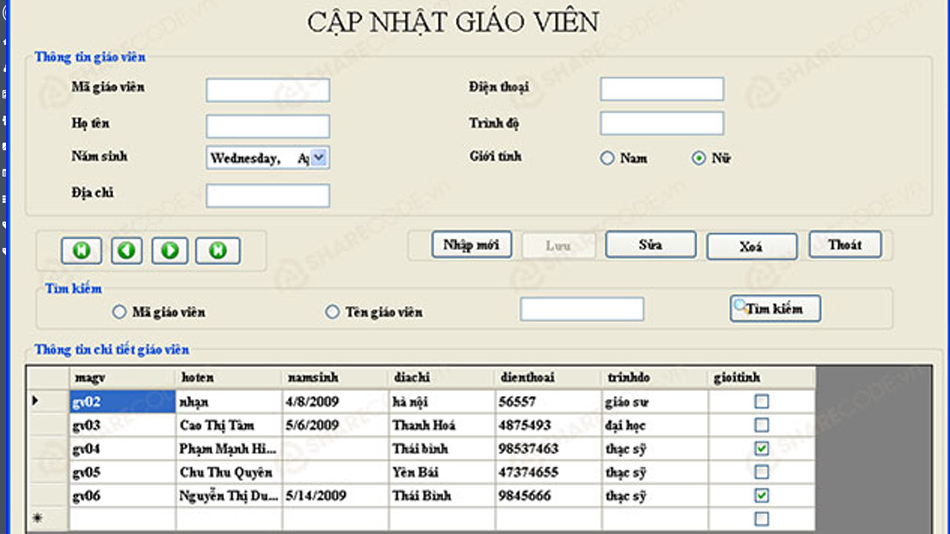 Ứng dụng Desktop quản lý giáo viên cấp 3 với chức năng Crud, tra cứu thông tin