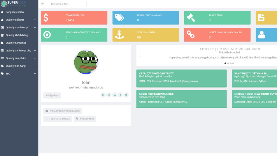 Phát triển web quản lý bán hàng online với giỏ hàng, thanh toán và quản lý kho.